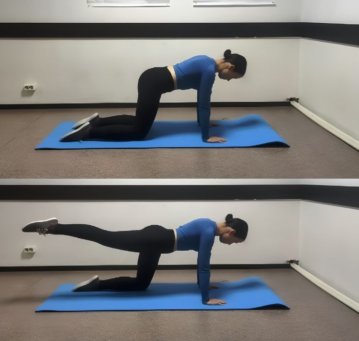 - Отведите согнутую в колене ногу в сторону. Затем вытяните её назад.