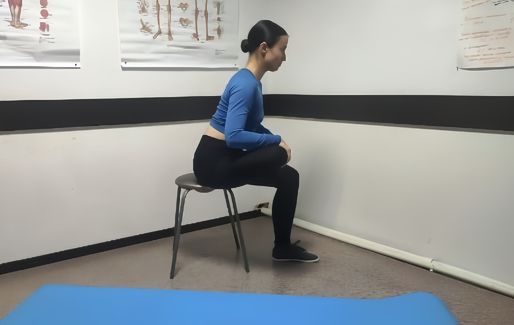 - Сядьте на стул, выпрямите спину. Одну ногу согните в колене и уприте в пол. Вторую ногу согните, и расположите голень на бедре опорной ноги.