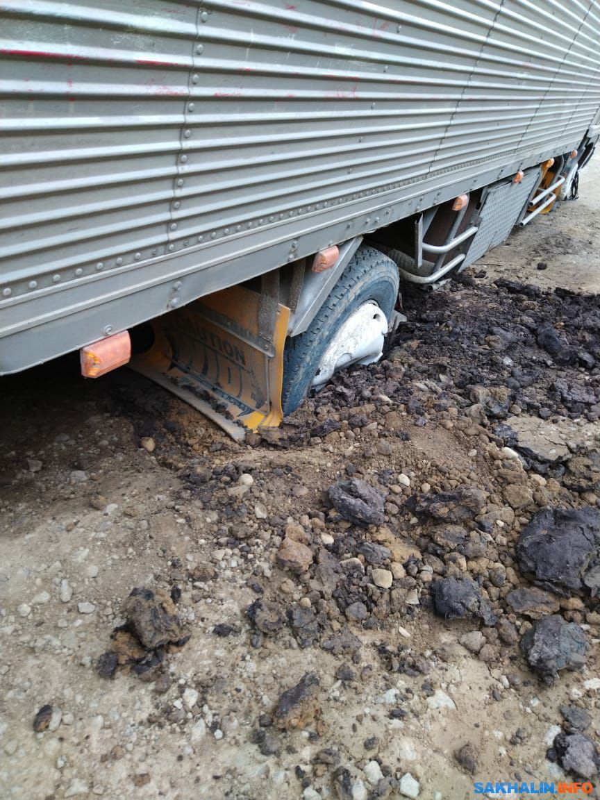 Автомобильные дороги в Углегорском районе местами оставляют желать лучшего. Особенно славится участок от Медвежьего и далее на юг. На фото и видео, которые прислали в ИА Сах.ком соавторы, можно видеть, как пассажиры рейсового автобуса вынуждены были выйти из салона, чтобы автобус смог проехать проблемный участок, представляющий собой грязную жижу.