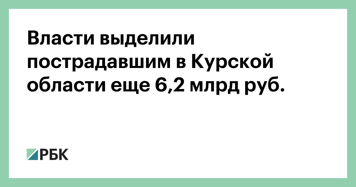 Правительство России выделило более 6,2 млрд руб. на выплаты жителям Курской области, лишившимся имущества первой необходимости, распоряжение опубликовано на сайте кабмина.