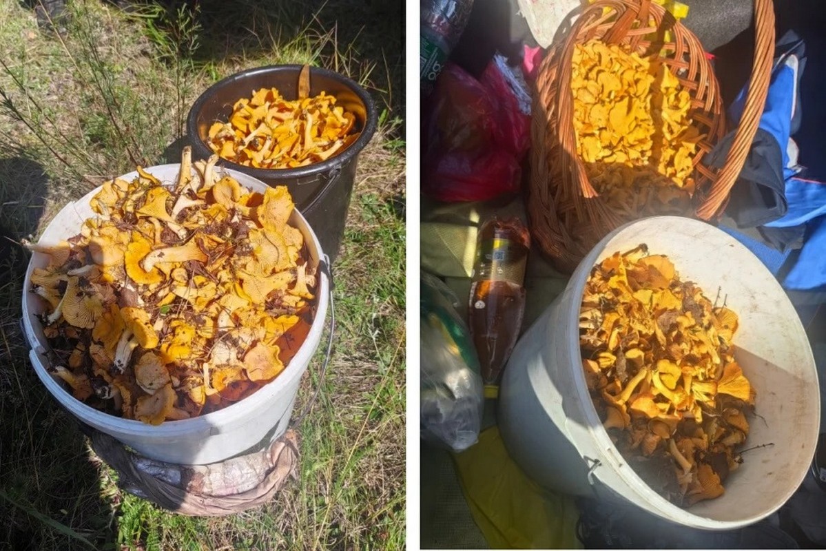 Так, грибник Дмитрий поделился фотографией сразу нескольких вёдер лисичек, отметив, что «за день дважды в лес съездил». По его словам, столь щедрый урожай он нашёл на Борисовском полигоне.