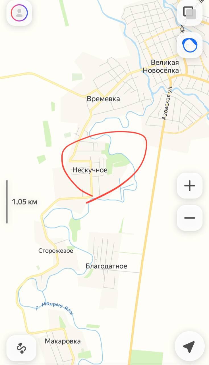 о переходе под контроль Армии России крупного села Нескучное (население более 700 жителей)