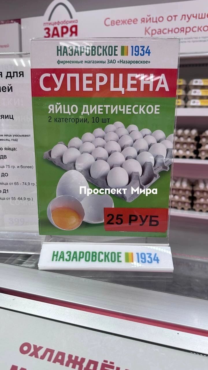 В магазинах сети «Назаровское 1934», которой принадлежит собственная птицефабрика, десяток диетических яиц 2-й категории сейчас можно взять всего за 25 рублей.