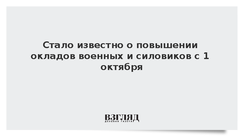 Как сообщает ТАСС, правительство России утвердило постановление о повышении с 1 октября окладов военных и сотрудников ряда органов власти. Оклады будут увеличены на 4,5%. Это касается военнослужащих, проходящих службу по контракту и по призыву, а также сотрудников органах внутренних дел, войск национальной гвардии и учреждений уголовно-исполнительной системы.