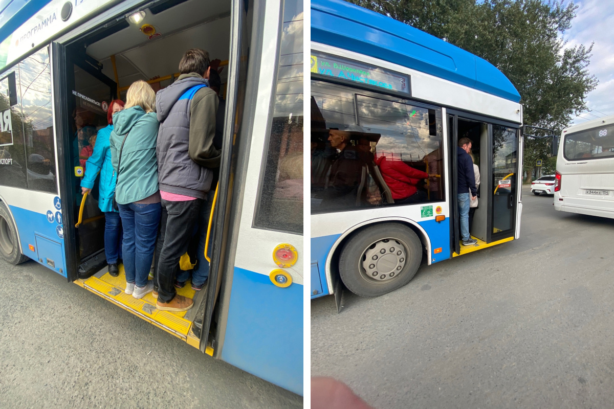 Утром, 7 сентября, в троллейбусе №29 с трудом вместил желающих проехать по маршруту. В соцсетях появились кадры с пассажирами, которые вплотную стоят друг к другу в дверных проемах.