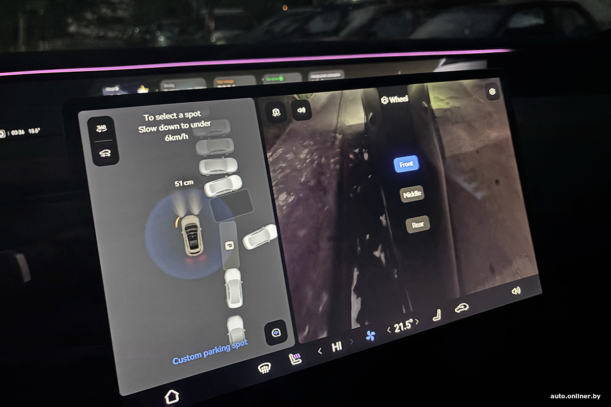 «Побаловались» мы и с автопарковкой — на стоянке возле супермаркета. Работает эта функция так: машина выводит на дисплей вакантные места для стоянки, водитель выбирает то, которое ему больше по душе, и автомобиль начинает «рулить» процессом.