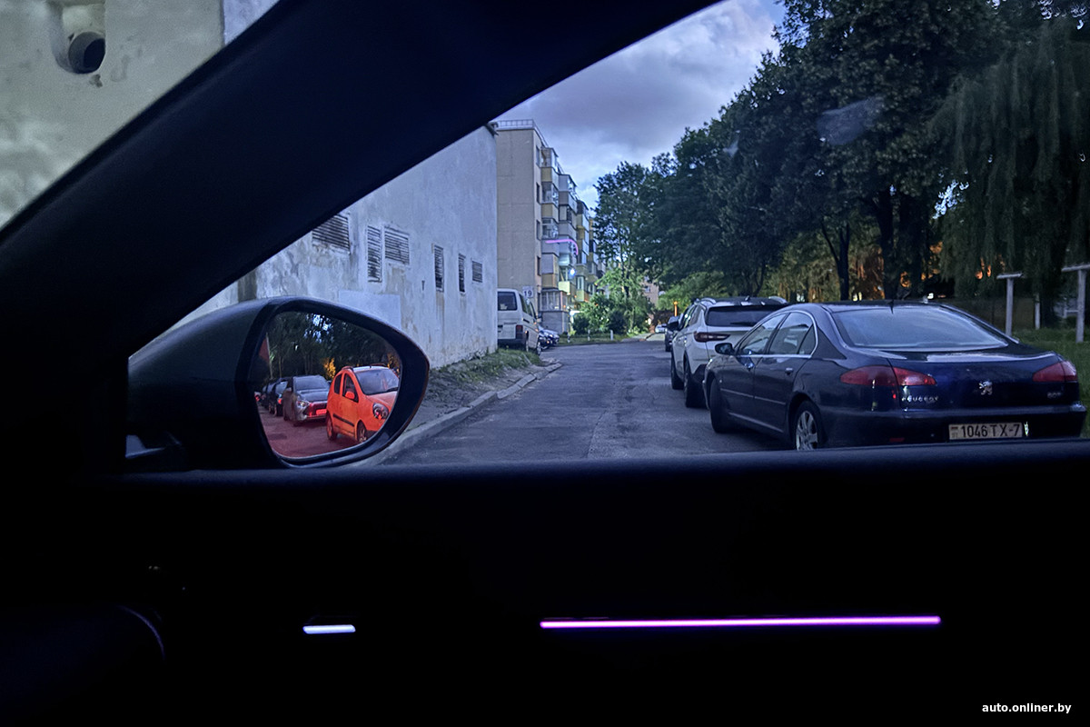 Попробовали заехать в загруженный двор на пр. Пушкина, где разметкой и не пахнет. Тем не менее машина периодически предлагает вакантные, по ее мнению, места. Вот только если мы припаркуемся по инструкции автомобиля, то перекроем проезд для других участников движения. В общем, во дворах без разметки опция не бесполезна, но стоит оглядеться по сторонам и удостовериться, что вы никому не помешаете своей парковкой.