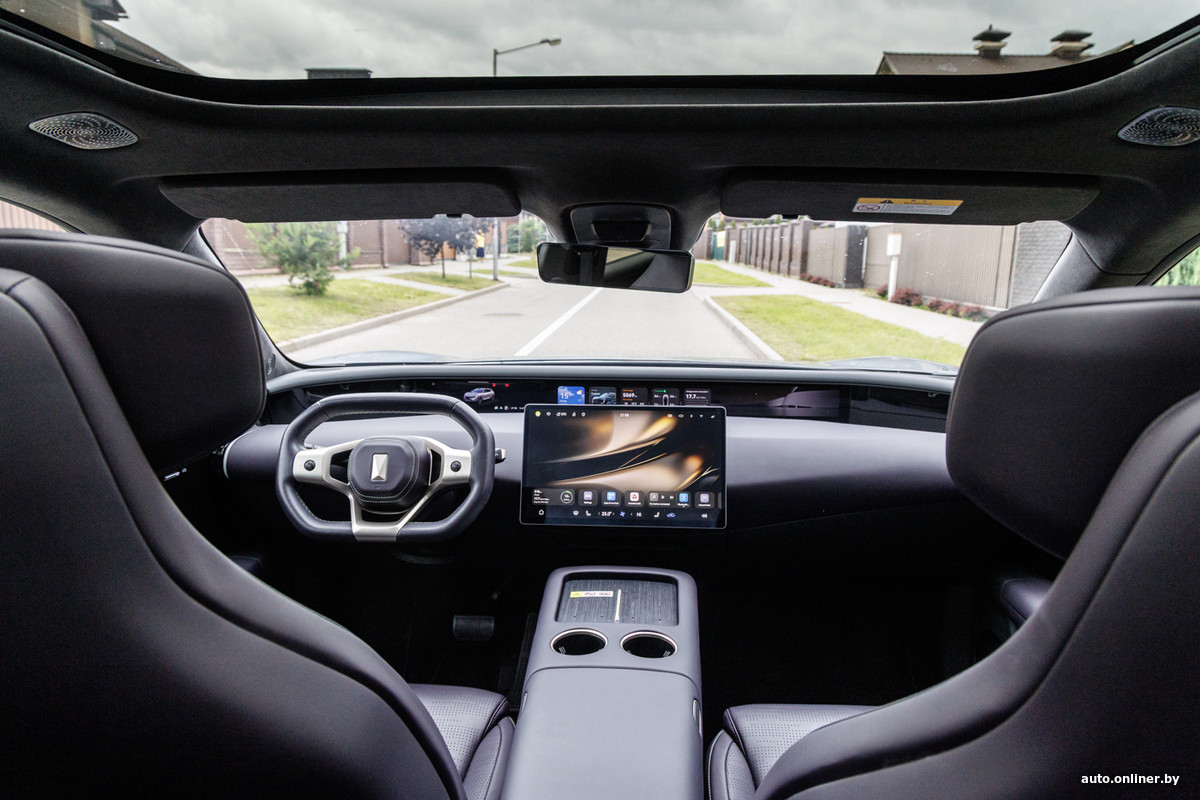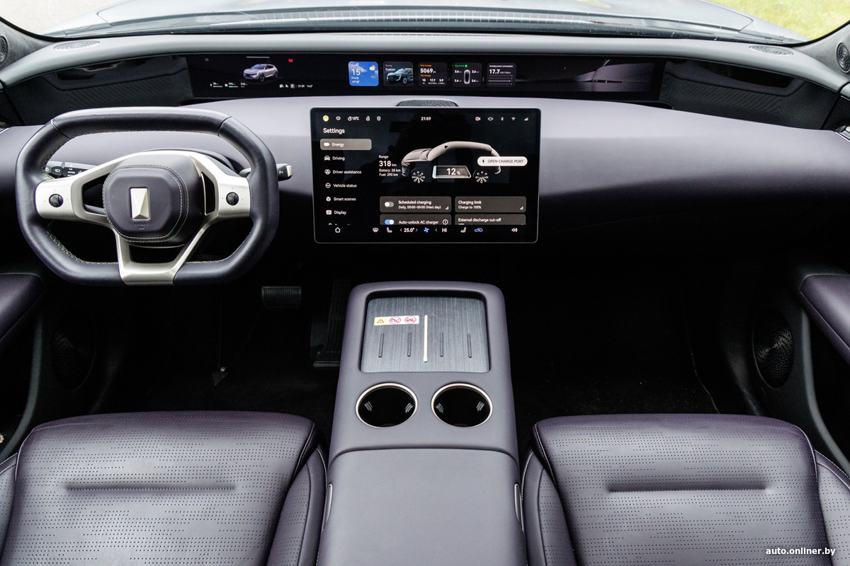 В Беларуси 07 стоит от 39 900 долларов в эквиваленте. Комплектаций представлено целых шесть. Основное отличие — в силовых установках (электро/гибрид) и приводе (задний/полный). Нам выдали «максимум» — Ultra (AWD) REEV.
