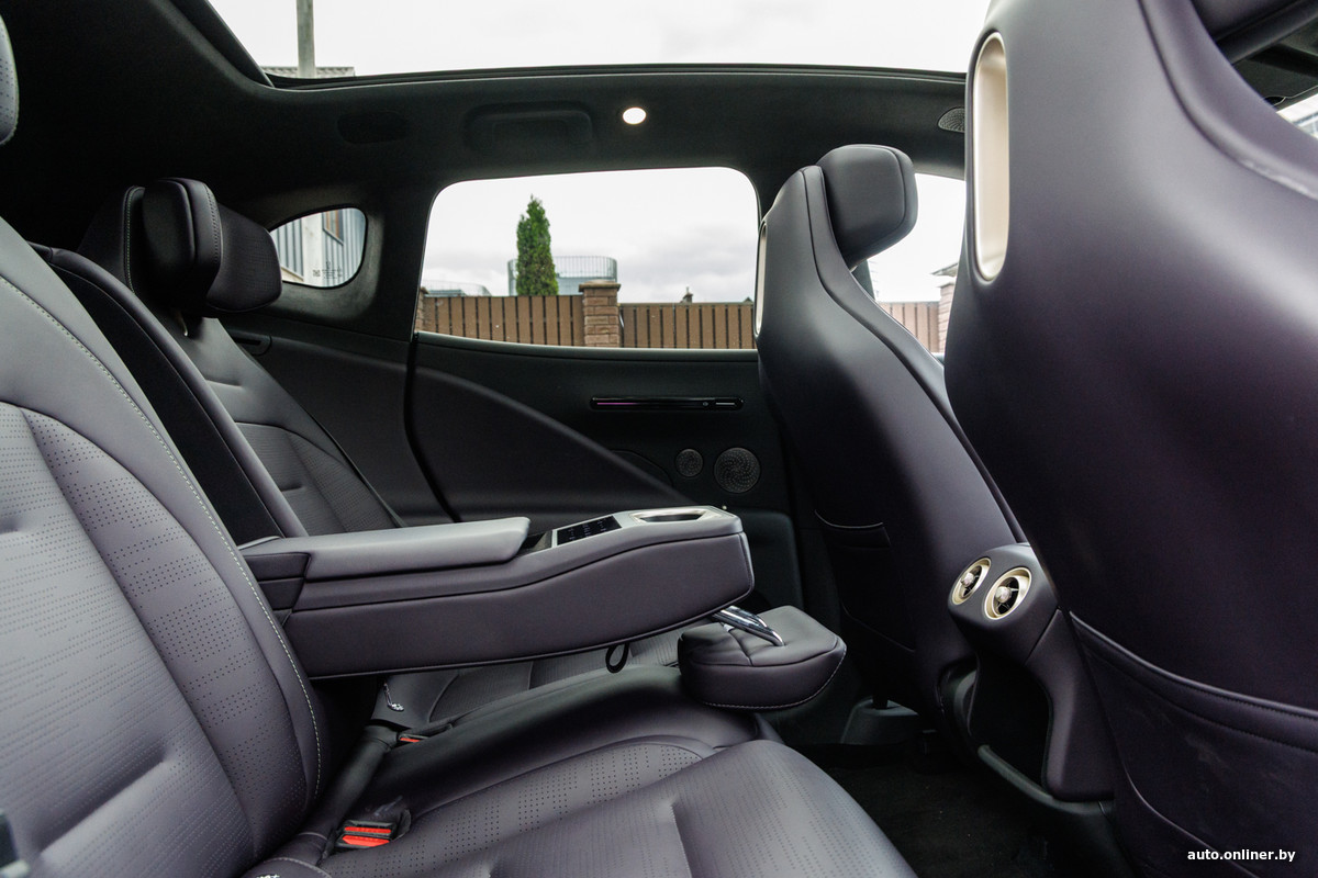 Передние и задние кресла — с массажем, подогревом, вентиляцией и памятью. Задние пассажиры могут сами управлять всеми этими опциями через дисплей в подлокотнике.