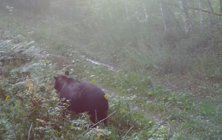На записи видно, как мишка, почти не глядя по сторонам и не отвлекаясь на другие дела, что-то жуёт. Сейчас у косолапых нет важней заботы, чем набрать вес перед спячкой. В ход идёт всё: ягоды, травы, корешки, муравьи и грибы.