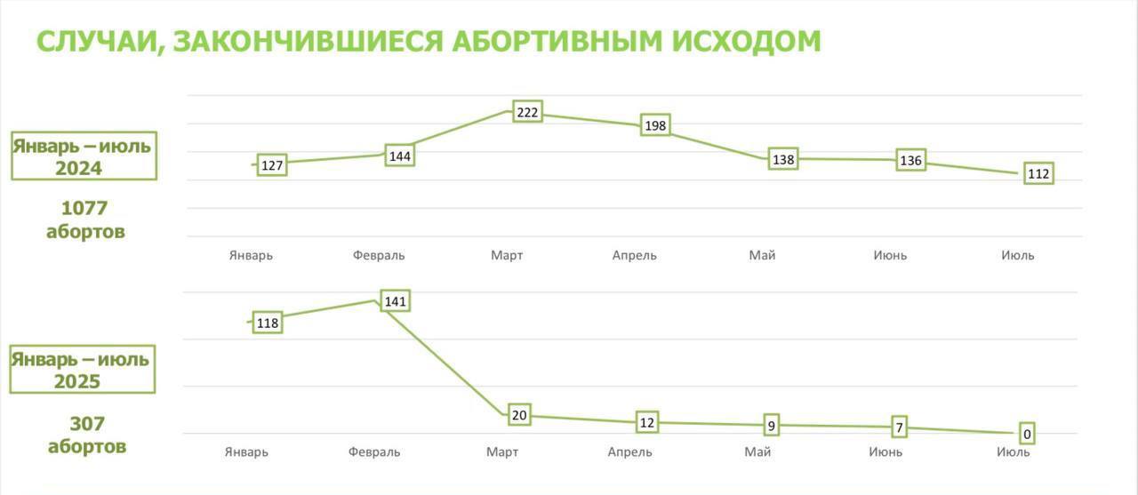 ‼️В июле число абортов на Вологодчине сократилось до нуля. Снижение наблюдаем с марта, динамика отражена на графике. Над этой задачей работаем совместно с Русской православной церковью, общественными организациями, медицинскими специалистами, социальными службами. На решение демографических задач направили 2,8 млрд руб. Всестороннюю поддержку оказываем по нашей программе «Семья — оплот Русского Севера». В июле на учет по беременности и родам в медучреждения Вологодской области встали 356 женщин, сейчас общее количество будущих мам составляет 4170 человек. Частные клиники отказались от выполнения процедур по искусственному прерыванию беременности. Операции проводятся по медицинским показаниям и в случае последствий преступных действий в отношении женщин в Перинатальном центре области. Работает горячая линия +7 (8172) 71-78-60. Курс на демографическое возрождение и пропаганду традиционных ценностей, взятый регионом, поддержали члены Патриаршей комиссии Русской православной церкви. Эффективным признано сочетание профилактических и стимулирующих мер, направленных на сохранение наивысшей ценности — человеческой жизни. Борьбу за человека и будущее Вологодчины продолжим. Уже не раз говорил — это вопрос выживания.