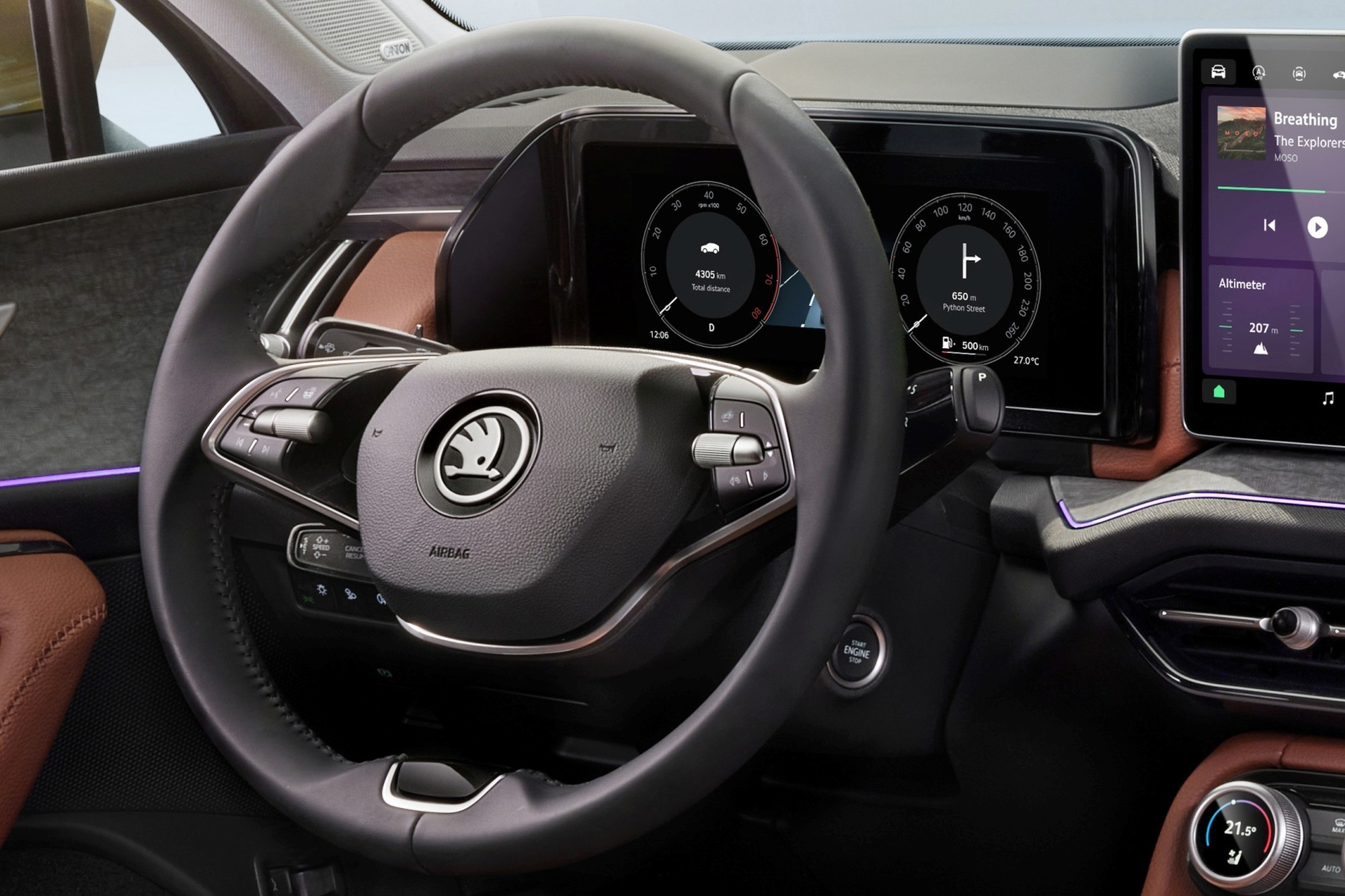 Дизайн дверных карт у грядущих чешских новинок совершенно разный, при этом обе модели имеют как бы парящие ручки отпирания замков. Селектор АКП переехал с центрального тоннеля на правую сторону рулевой колонки, управление дворниками «по-мерседесовки» перенесено на левый подрулевой рычажок, что, прямо скажем, сомнительное с точки зрения эргономики решение.