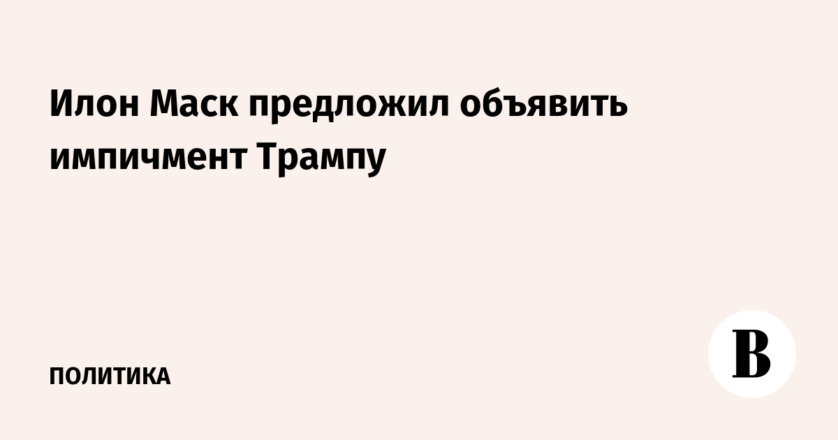 Бизнесмен Илон Маск объявил, что выступает за идею об импичменте президента США Дональда Трампа. Он написал об этом в соцсети X. Заменой американскому лидеру, по его мнению, должен стать вице-президент США Джей Ди Вэнс.