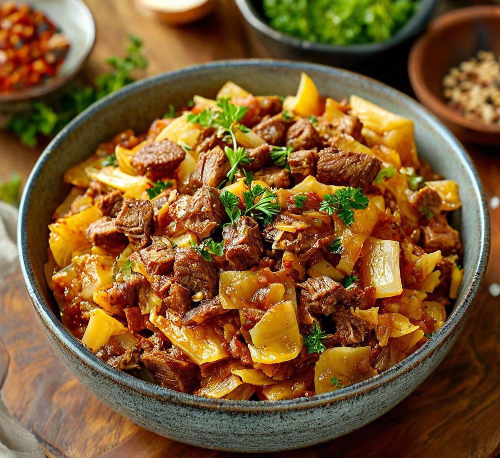 6. Накрыть крышкой и тушить около часа. Время от времени перемешивать.