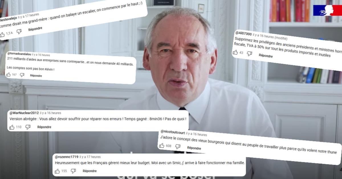 Les internautes l’ayant commentée ont manifestement été peu réceptifs à cette première vidéo où François Bayrou a insisté sur la situation difficile des finances publiques, avec un déficit qui devrait être de 5,4% du PIB en 2025 et une dette publique record à 113% du PIB. «Bayrou démission», «nous n’avons pas voté pour vous», «c’est du populisme démocratique», «nullissime»... Les commentaires - qui étaient d’ailleurs fermés lors de la publication de la vidéo, suscitant l’incompréhension sur les réseaux sociaux, avant d’être finalement ouverts - sont souvent virulents.