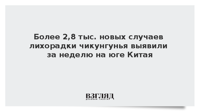 Более 2,8 тыс. новых случаев заражения лихорадкой чикунгунья было выявлено в провинции Гуандун, сообщает Центральное телевидение Китая, передает РИА «Новости». За период с 27 июля по 2 августа зарегистрировали 2892 новых случая, из которых 2770 пришлись на город Фошань.
