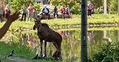 В Москве полицейские устроили погоню за лосем, который купался в пруду и прыгал через прохожих