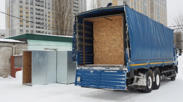 Грузовик, в который уже погрузили в разобранном виде четыре из пяти блиндажей, уже готов к отправке в зону СВО. Один блиндаж специально собрали, чтобы показать его журналистам и рассказать о функционале.