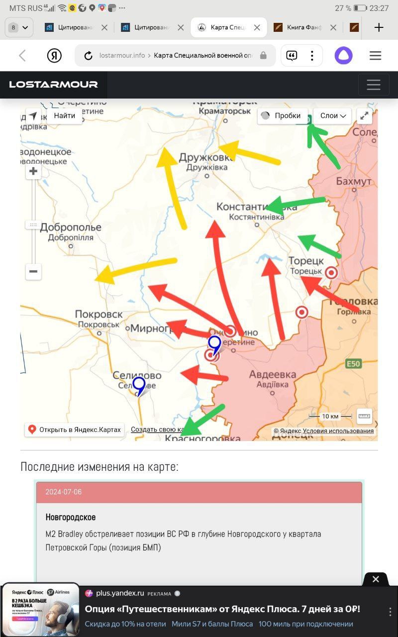 То, что вы любите: красным (Центр), зелёным (Юг) - лето-осень 2024 года, действия ВС РФ. Жёлтым - перспективные действия примерно на зиму-весну 2025 года. Пояснения и описание нынешней оперативно-стратегической ситуации чуть позже, сегодня постараюсь расписать. Карта - лостармор.