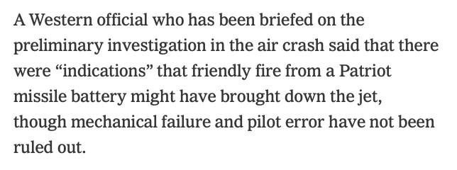 New York Times подтверждает версию о том, что украинский самолет F-16 был сбит дружественным огнём системы ПВО Patriot.