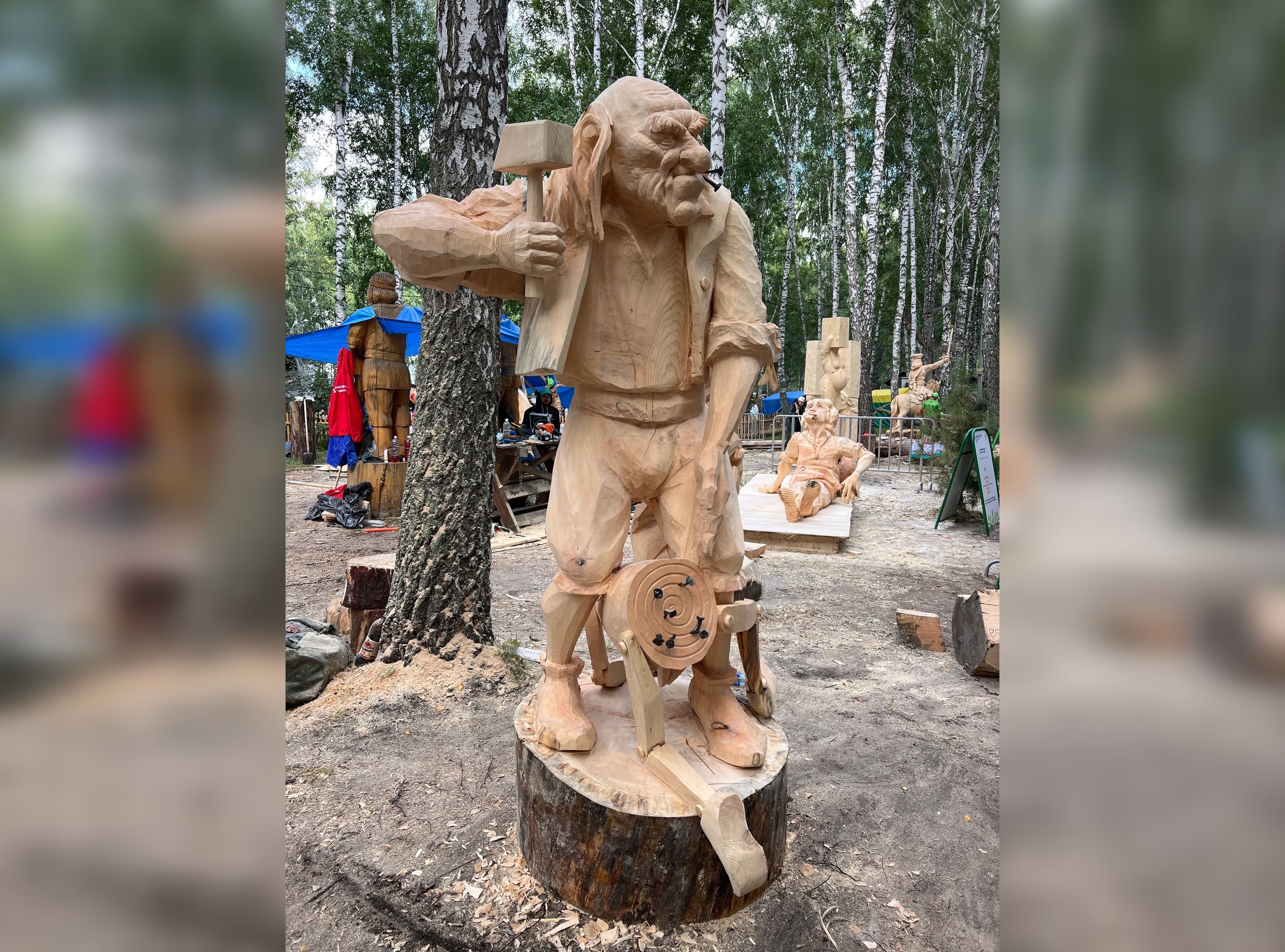 Организованный в Томской области ежегодный фестиваль народных ремёсел "Праздник топора" завершился победой деревянной скульптуры "Воспитание". Изваяние выполнено в виде папы Карло, который вбивает гвозди в провинившегося Буратино.