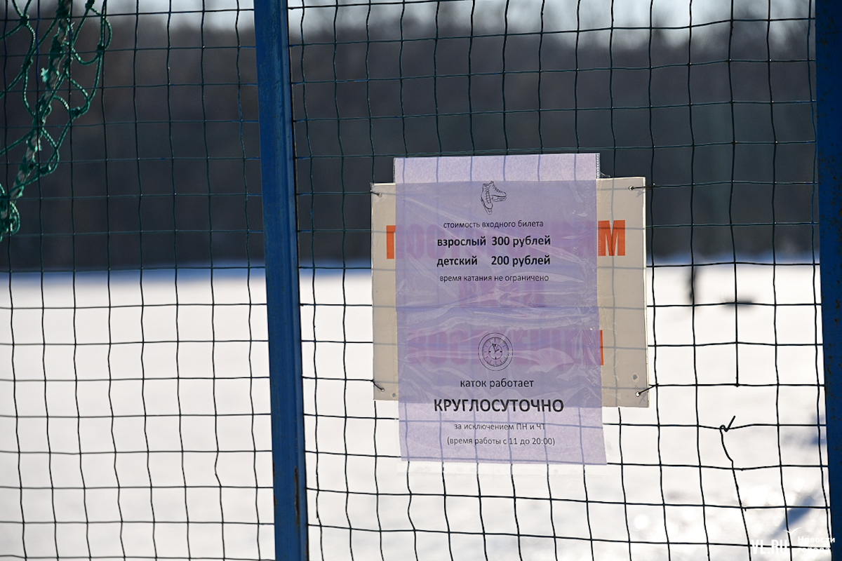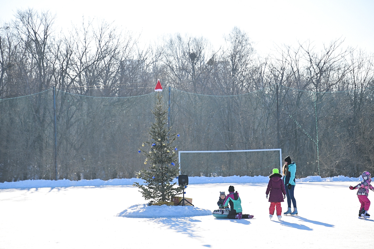 На катке установили живую ёлку и музыкальную колонку. Вечером территорию подсвечивают гирлянды. Лёд обновляется дважды в неделю – по понедельникам и четвергам.