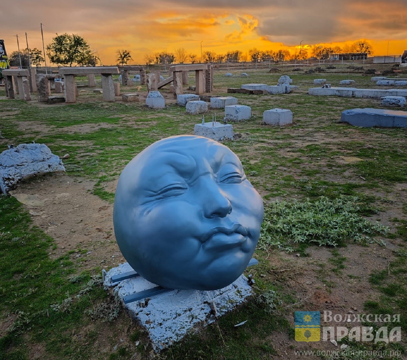 29 октября в парк «Волжский» из Санкт-Петербурга прикатился новый обитатель, слегка выбивающийся из общей концепции персонажей арт-пространства. Автором колоритного колобка является питерский художник и скульптор Роман Антонов. Арт-объект ваялся в городе на Неве, а потом, на машине, транспортировалась в Волжский.