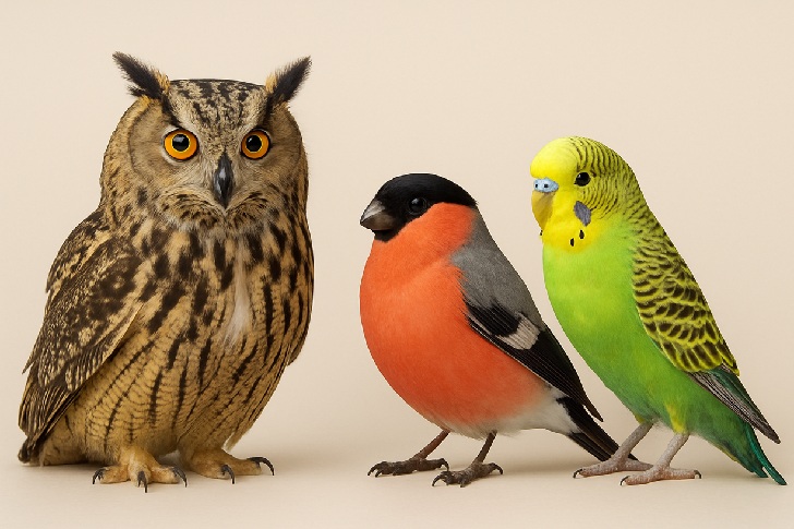 Перед вами изображены три птицы: сова, снегирь и попугай. Представьте, что вы можете покормить, погладить или приласкать только одну из них — ту, которая вызывает у вас наибольшее доверие и не вызывает страха.