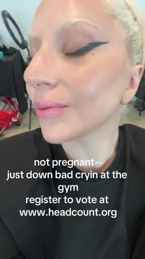 Конечно же, все принялись поздравлять звезду, но, как оказалось, поторопились (или все-таки нет, ведь артисты так любят добавлять таинственности и отрицать очевидное?) — Леди Гага опровергла эти новости. Она коротко сообщила, что вовсе не в положении и предоставила подтверждение этому, записав ролик в спортзале.