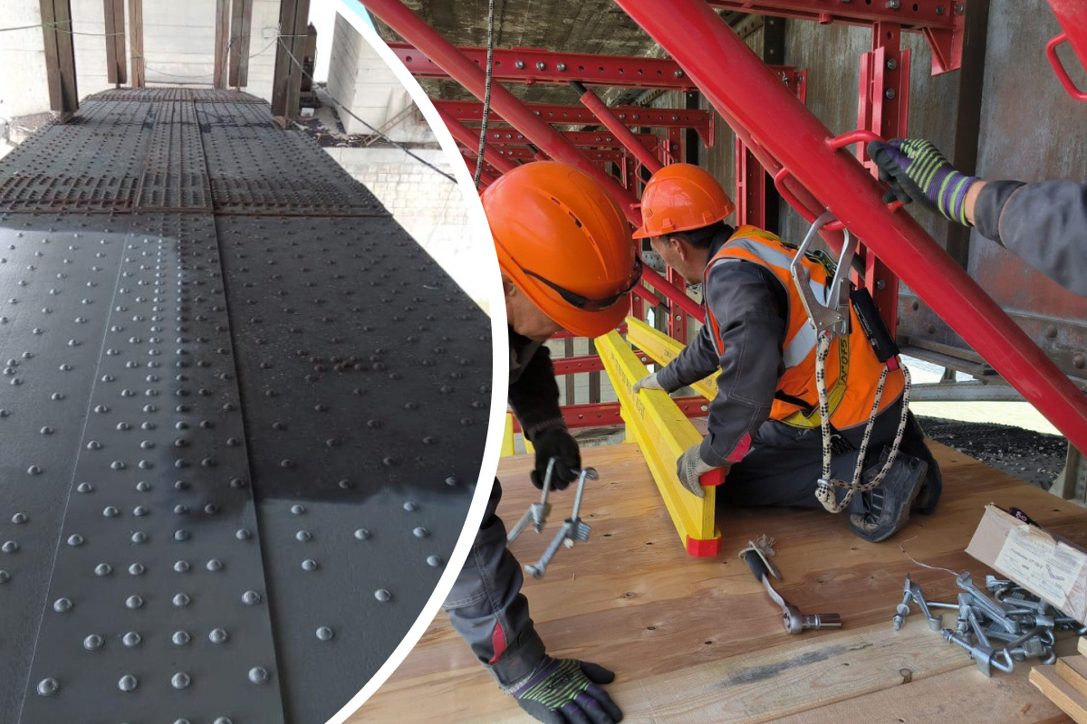 — Сейчас цвет конструкций — разный. Ближе к левому берегу пролеты темного серо-коричневого цвета, а на правом берегу светлого серо-зеленого, — отметили в ООО «СпецТрансСтрой».