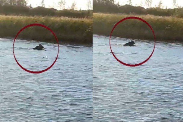 "Мишка, ты куда поплыл то, иди к нам", - на видео слышно, как рыбаки кричат водоплавающему медведю. Зверь переплывал реку Свирь на участке от устья реки Паши до белого монумента — памятника-маяка.