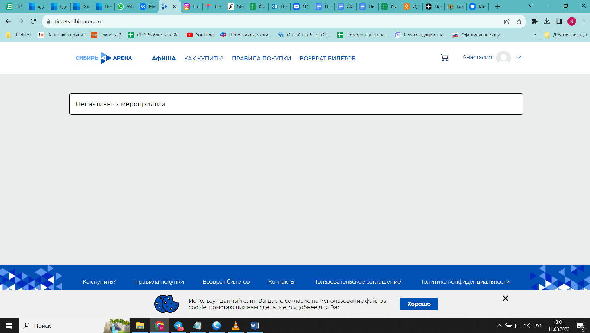 Корреспондент NGS.RU зарегистрировалась на сайте и тоже попробовала купить билет — доступных мероприятий не высветилось.