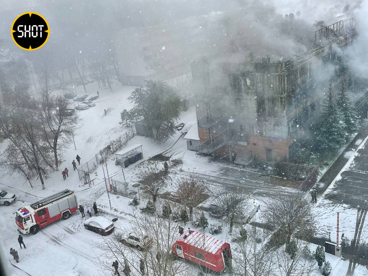 Сейчас огонь локализован. Фасад здания полностью выгорел.