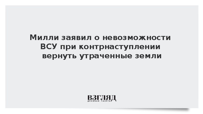 Милли заявил о невозможности ВСУ при контрнаступлении вернуть утраченные земли