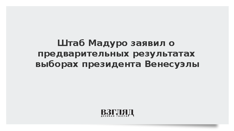 Штаб кандидата в президенты Венесуэлы Николаса Мадуро заявил о его победе, призвав дождаться официальных цифр Национального избирательного совета CNE, следует из заявления спикера парламента Венесуэлы Хорхе Родригеса.