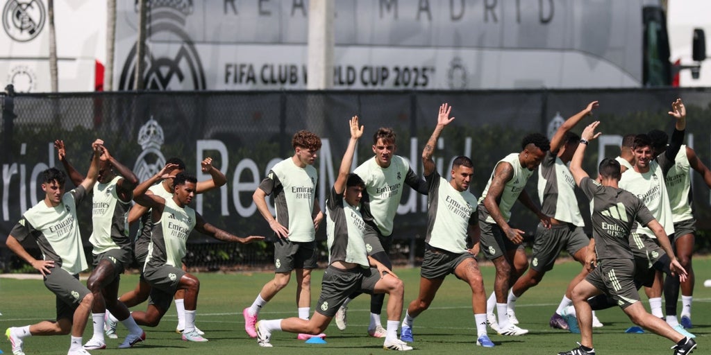 También participaron en el entrenamiento Carvajal, Militao, Rüdiger y Alaba, aunque está por ver si tendrán minutos en el torneo. El lateral y el brasileño van con paso seguro, pero sin prisa. Sus graves lesiones de rodilla exigen prudencia. En el caso del defensa germano, operado del menisco hace mes y medio, puede que esté disponible para el segundo partido, el domingo en Charlotte (21.00 horas) ante el Pachuca. Y en cuanto a Alaba, que no deja de encadenar graves lesiones de rodilla y que se recupera del menisco roto de la pierna izquierda, el club estaría encantado en que se buscara una salida para ahorrarse su alta ficha, pero esa no es la idea del austríaco, que desea cumplir el año que le resta de contrato.