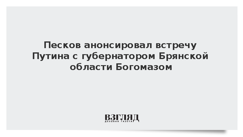 «Идет череда встреч. Среди тех, кто будет встречаться с главой государства, будет и губернатор Брянской области Богомаз», – пояснил Песков, передает ТАСС.