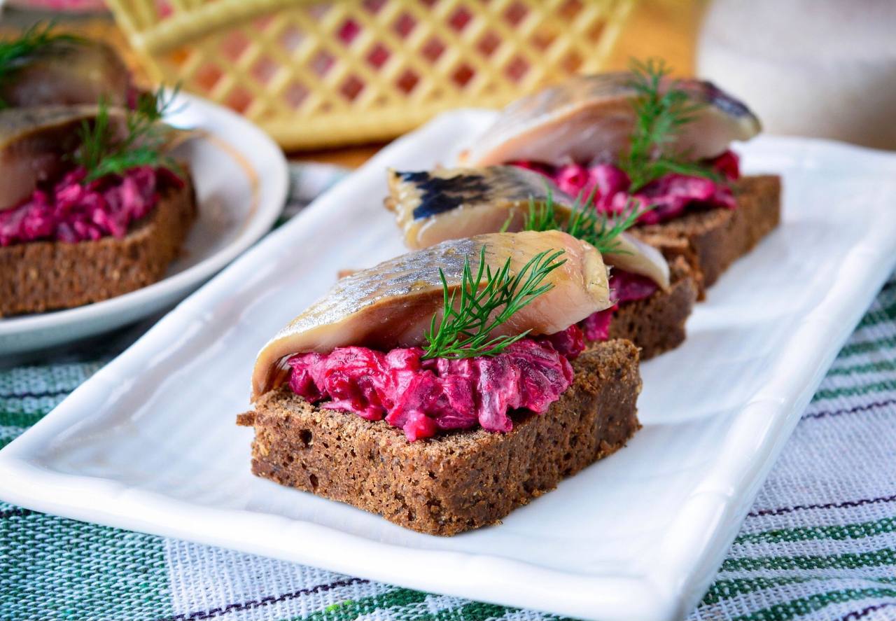 4. Выложить массу на обжаренные тосты, сверху кусочки сельди и любую зелень.