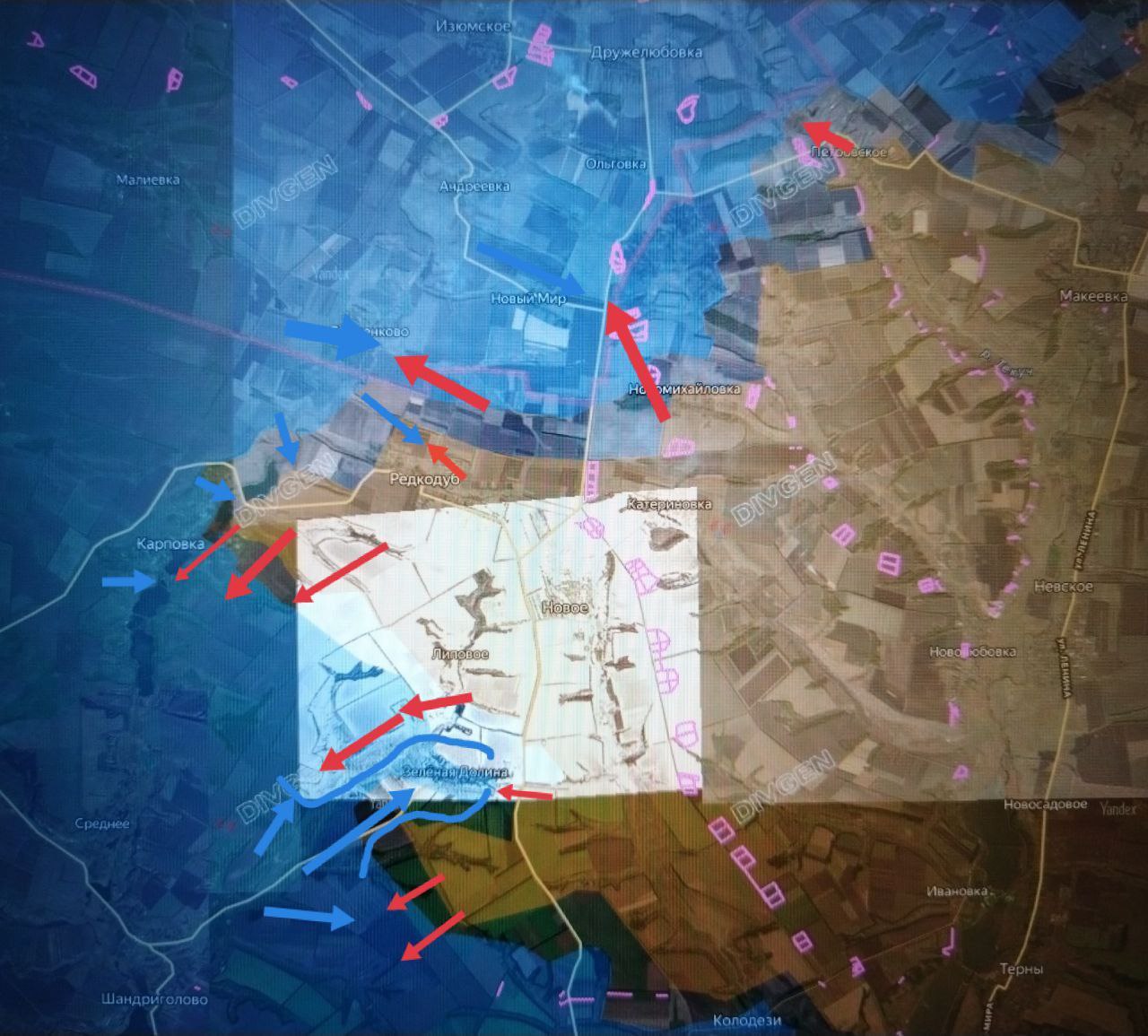 Наши подразделения продолжают атаковать Новый Мир. Удалось выбить противника из двух опорных пунктов севернее Новомихайловки - восточнее Нового Мира. Есть оперативная информация о заходе наших штурмовых групп в само село.