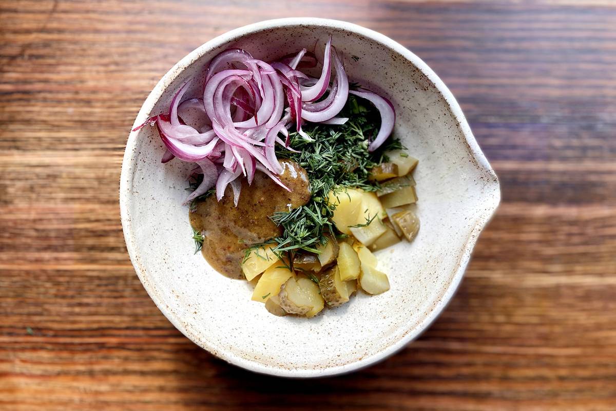 Обратите внимание, что нужна кремовая горчица, не зернистая. Зерна можно добавить отдельно при желании — они дадут приятную текстуру и вкрапления яркого вкуса. Купить их можно в отделе приправ в супермаркетах.