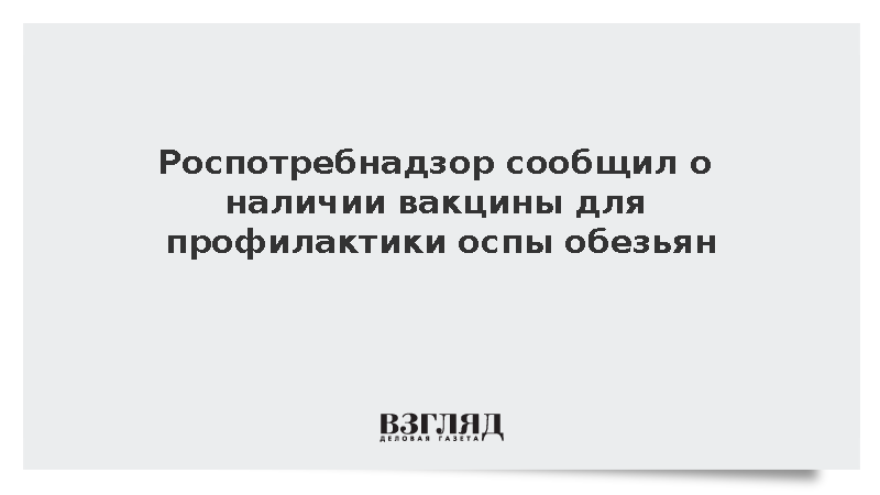 Вакцина для профилактики оспы обезьян есть в наличии в Центре «Вектор» Роспотребнадзора, ведомство ведет работу в области профилактики, лечения и диагностики возбудителей данного заболевания, сообщили в ведомстве.
