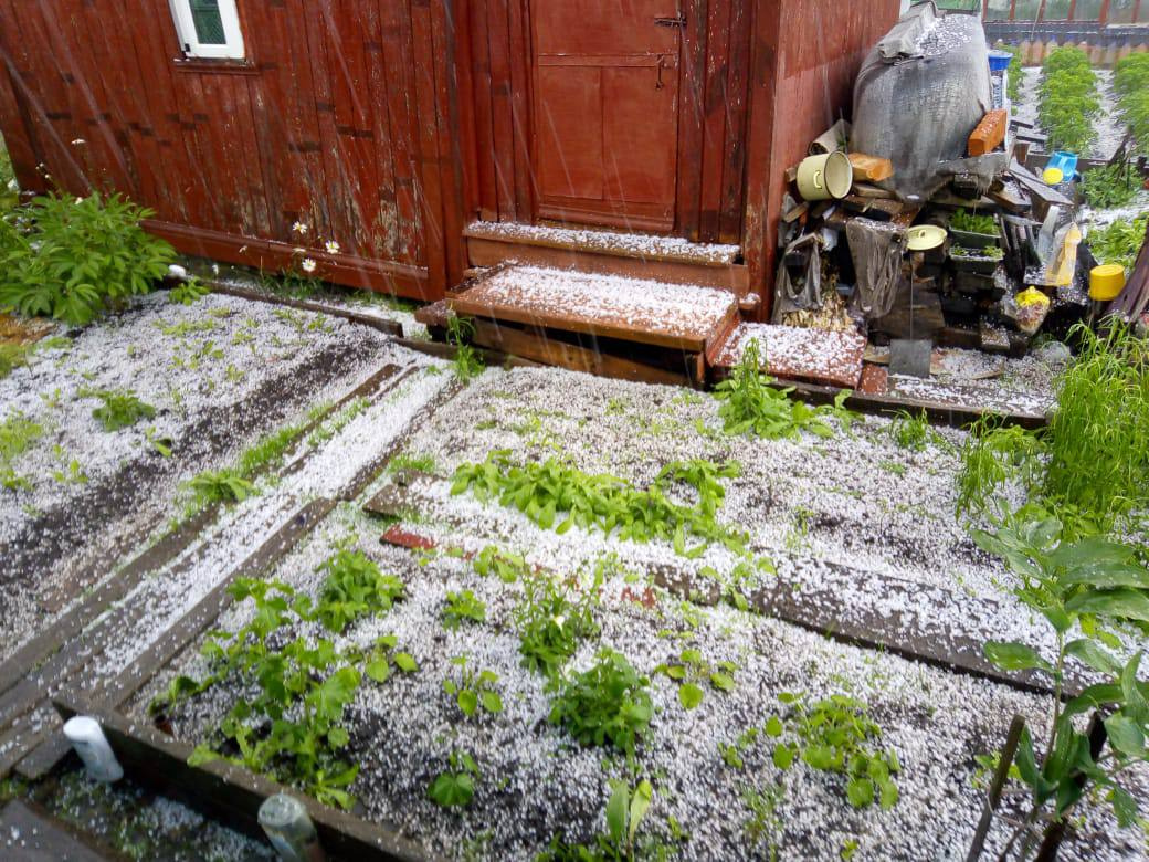— Сначала был мелкий, потом всё сильней и сильней. Побьет весь урожай, похоже, — рассказывает жительница Новоуральска.