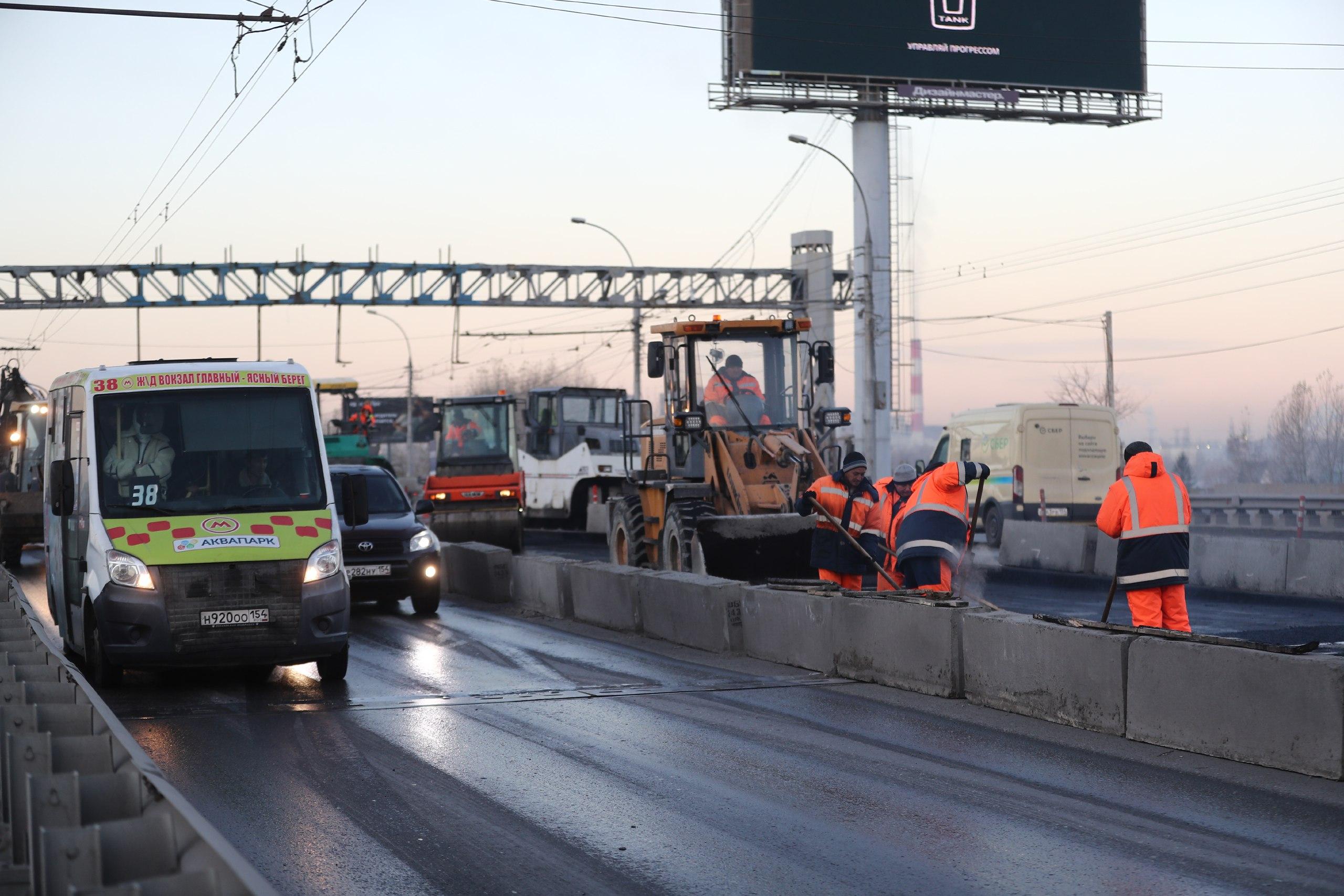 Уложить асфальт сразу на две полосы Димитровского моста именно в рабочие дни решили из-за погоды. Об этом сообщил сегодня, 16 октября, директор МКУ «Гормост» Сергей Эпов. На выходных, по его словам, ожидается похолодание.