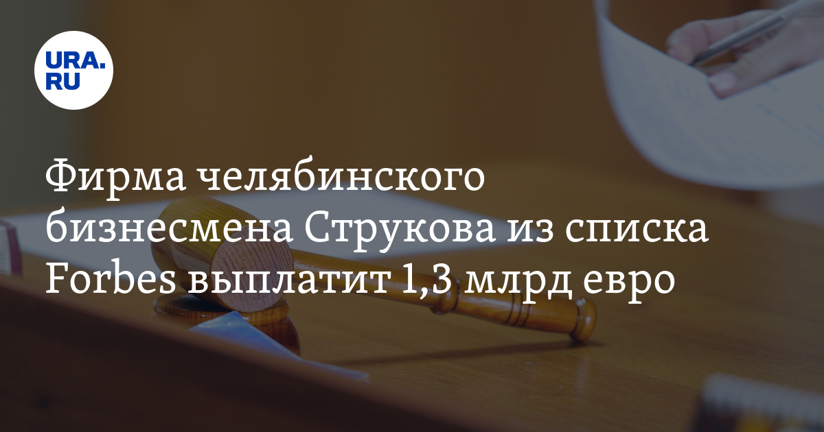 Фирма «Южуралзолото группа компаний» (Челябинская область) бизнесмена Константина Струкова, входящего в список богатейших россиян Forbes, выплатит по решению суда 1,3 млрд евро. Соответствующее решение принял Арбитражный суд Москвы.