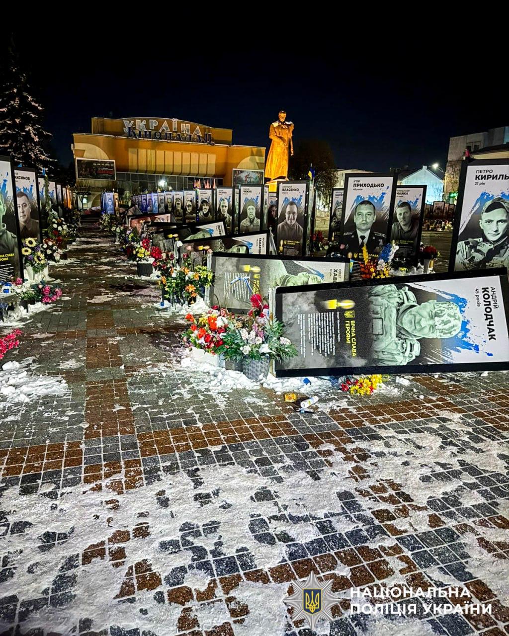 Обстановка в Ровно: женщина, находясь в состоянии алкогольного опьянения, заявила, что её раздражают портреты погибших солдат ВСУ, после чего расшвыряла их.