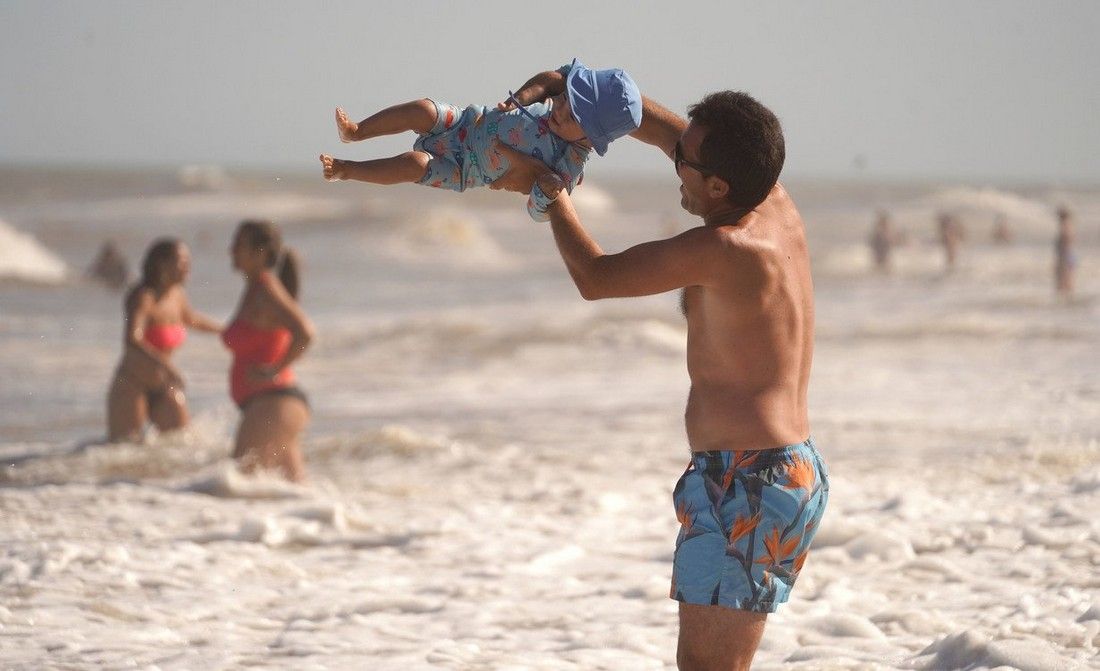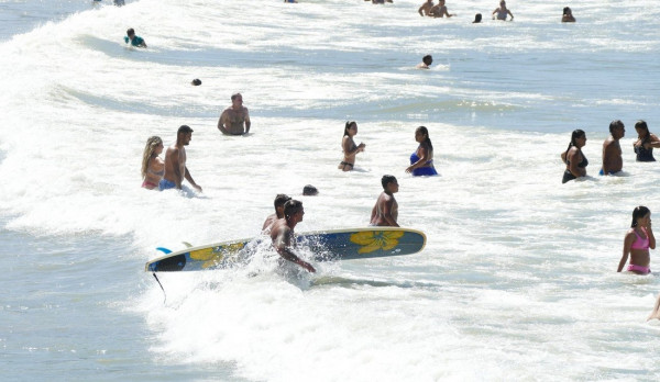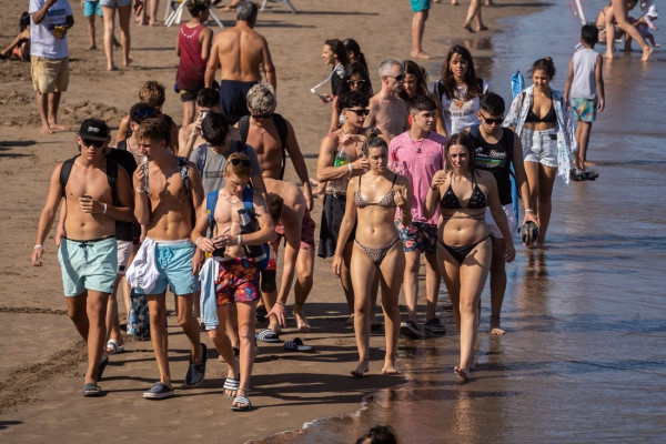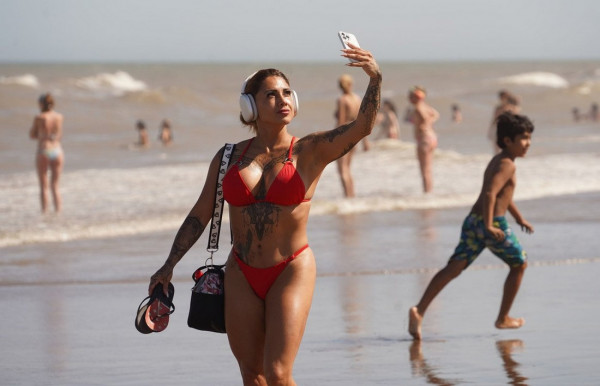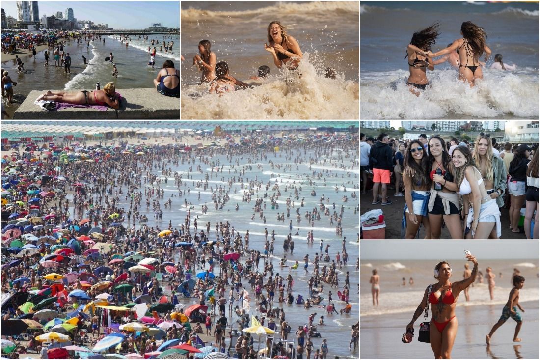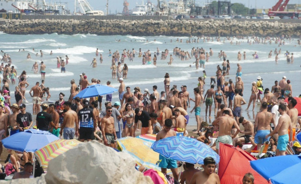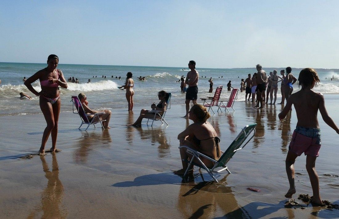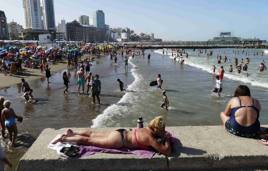 Пока у нас на улице зима и погода такая, что не хочется лишний раз туда нос высовывать, в Аргентине лето в самот разгаре. Температура воздуха в городе Мар-дель-Плата превышает 30 градусов тепла по Цельсию. Тысячи аргентинцев решили отправиться на Атлантическое побережье в первые дни Нового года. Местные жители и туристы целыми семьями и группами друзей загорают, купаются и наслаждаются теплом, солнцем и водой.