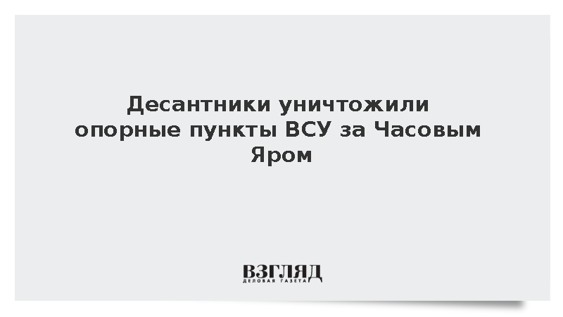 Как писала газета ВЗГЛЯД, Министерство обороны России сообщило об освобождении города Часов Яр в ДНР. Для освобождения Часова Яра бойцы прошли 20 километров под артобстрелами. В Часовом Яре уничтожили самую большую за всю историю спецоперации на Украине группировку ВСУ.