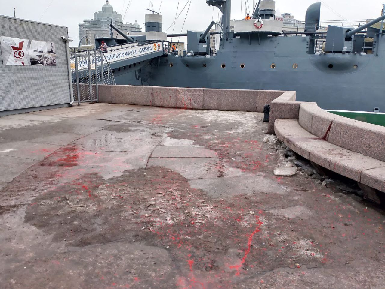 Инцидент произошел накануне после полудня. Как рассказали 29 февраля в ГУ Росгвардии по Петербургу и Ленобласти, сотрудники вневедомственной охраны прибыли к «Авроре» после того, как работники музея нажали тревожную кнопку, увидев драку на набережной. Выяснилось, что неизвестные подбежали к молодым людям и облили их красной краской. Потерпевшие предлагали прохожим фото с голубями.