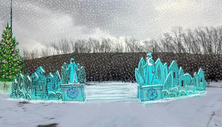 Кроме того, за ДК установят фотозону со светящимися ледовыми скульптурами Деда Мороза и Снегурочки. А также две горки: среднюю с естественным спуском более 15 метров и маленькую — длиной 5 метров.