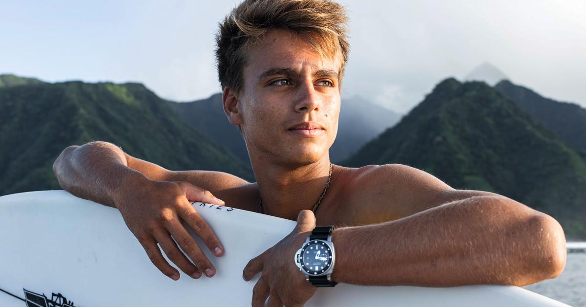 Kauli Vaast se prépare depuis longtemps pour l’un des rendez-vous majeurs de sa carrière. Entre le 27 et le 30 juillet prochain, le surfeur professionnel français prendra part aux épreuves olympiques de sa discipline au cœur du spot de Teahupo’o, à Tahiti, où il s’entraîne régulièrement. Pour être à l’heure de cet événement, ce sportif de haut niveau, capable de défier des vagues de 10 mètres de haut, fait confiance à sa montre Panerai Submersible. Étanche à 300 mètres, ce robuste garde-temps en acier de 42 mm, équipé du système de protège couronne typique de Panerai, est animé par le mouvement mécanique à remontage automatique P.900 disposant de trois jours de réserve de marche et du dispositif antichoc Incabloc qui est un atout supplémentaire lorsque l’on défie les éléments. Propice aux activités nautiques et de plein air, la période estivale est la saison par excellence pour les montres de plongée ou inspirées de l’univers marin.